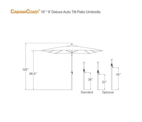Dimensions: 10 ft. x 8 ft., 109" Open Height, Pole Diameter 1.53'' Smooth