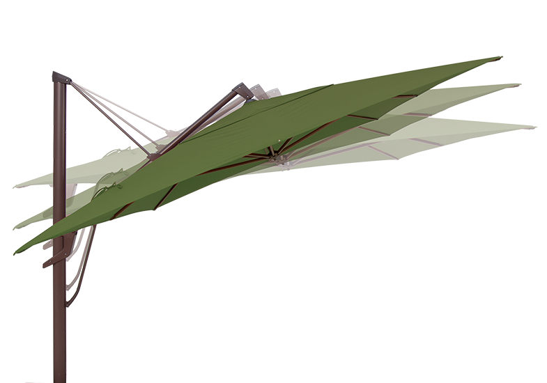 The 10' x 13' AKZ PLUS Custom Cantilever Rectangular Umbrella (AKZPRT) by Treasure Garden is elegant, durable and easy to use, bringing the perfect amount of shade and style to your patio. Its simple crank to open system makes setup easy, while its 360° rotation and infinite tilt function help you to follow the sun all day long.