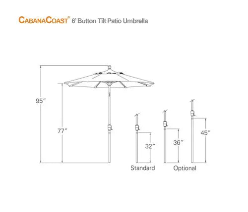 Dimensions: 6 ft Round, 95" Open Height, Pole Diameter 1.53'' Smooth