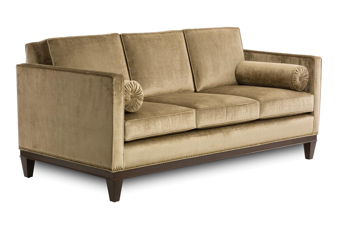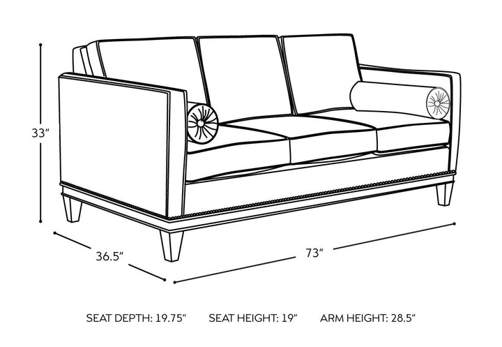 This exquisite design comes standard with metal nail head trim and includes a pair of round bolster pillows in the same fabric you choose for the sofa. You can also choose a single bench seat cushion or three over three for the sofa. There are so many wonderful choices to make this your very own creation and we’re here to help you every step of the way.