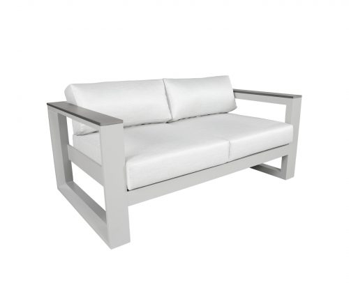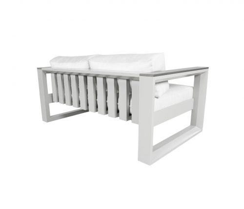 Inspired by the classic architecture of a raised structure offering a ‘fine view’ as it means in Italian, Belvedere is a collection of substantial nature. Accentuated by bold, chamfered edges and, Mica SOL Teak™ armrests, the robust profile of the Belvedere collection brings an immediate presence to any outdoor space. Belvedere is crafted from cast aluminum, finished with Tiger-Drylac® Grey or Sherwin-Williams® Patina paint, and is offered in deep seating or sectional options. Group photo cushions shown in 15000-0003 Spotlight Ash and 18″ x 18″ pillows shown in 145339-0006 Gable Stone.