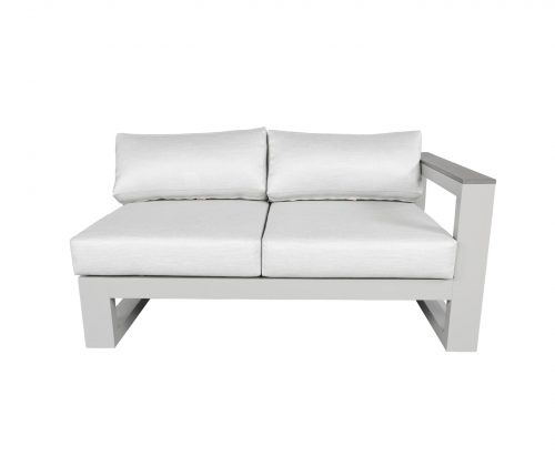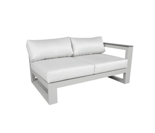 Inspired by the classic architecture of a raised structure offering a ‘fine view’ as it means in Italian, Belvedere is a collection of substantial nature. Accentuated by bold, chamfered edges and, Mica SOL Teak™ armrests, the robust profile of the Belvedere collection brings an immediate presence to any outdoor space. Belvedere is crafted from cast aluminum, finished with Tiger-Drylac® Grey or Sherwin-Williams® Patina paint, and is offered in deep seating or sectional options. Group photo cushions shown in 15000-0003 Spotlight Ash and 18″ x 18″ pillows shown in 145339-0006 Gable Stone.