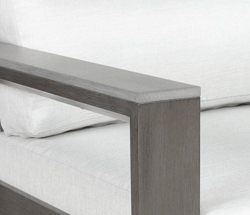 Inspired by the classic architecture of a raised structure offering a ‘fine view’ as it means in Italian, Belvedere is a collection of substantial nature. Accentuated by bold, chamfered edges and, Mica SOL Teak™ armrests, the robust profile of the Belvedere collection brings an immediate presence to any outdoor space. Belvedere is crafted from cast aluminum, finished with Tiger-Drylac® Grey or Sherwin-Williams® Patina paint, and is offered in deep seating or sectional options. Group photo cushions shown in 15000-0003 Spotlight Ash and 18″ x 18″ pillows shown in 145339-0006 Gable Stone.
