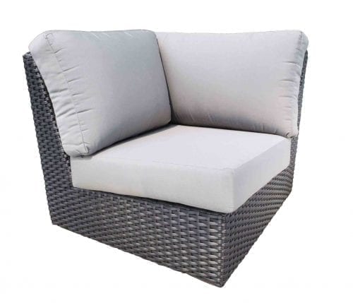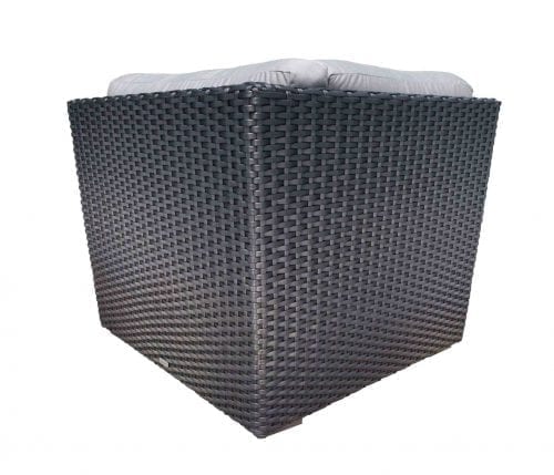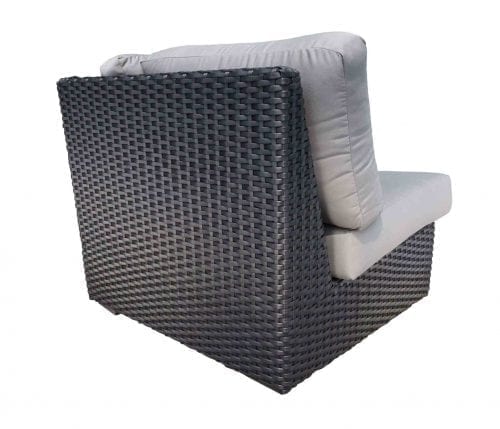 The Brighton patio furniture collection uses SolWeave® outdoor wicker that is hand woven onto an aluminum frame. The wide style, solid black wicker is clean and modern and gives a high end luxury look, sure to be a beautiful addition to your outdoor setting. The collection includes a variety of pieces to form multiple combinations of patio conversation sets, dining sets, and outdoor sectionals. Cushions are custom made in Toronto using your choice of Sunbrella® fabrics. Outdoor cushions are a great way to provide extra style and additional comfort. Cushions shown are 54048 Charcoal. The group picture cushions shown are 54048 Charcoal, 18″ pillows are 5404 Natural, and 5477 Red.