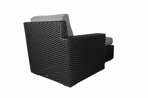 The Brighton patio furniture collection uses SolWeave® outdoor wicker that is hand woven onto an aluminum frame. The wide style, solid black wicker is clean and modern and gives a high end luxury look, sure to be a beautiful addition to your outdoor setting. The collection includes a variety of pieces to form multiple combinations of patio conversation sets, dining sets, and outdoor sectionals. Cushions are custom made in Toronto using your choice of Sunbrella® fabrics. Outdoor cushions are a great way to provide extra style and additional comfort. Cushions shown are 54048 Charcoal. The group picture cushions shown are 54048 Charcoal, 18″ pillows are 5404 Natural, and 5477 Red.