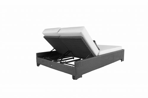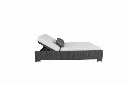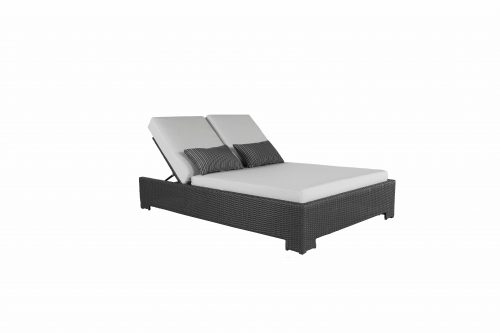 The Brighton patio furniture collection uses SolWeave® outdoor wicker that is hand woven onto an aluminum frame. The wide style, solid black wicker is clean and modern and gives a high end luxury look, sure to be a beautiful addition to your outdoor setting. The collection includes a variety of pieces to form multiple combinations of patio conversation sets, dining sets, and outdoor sectionals. Cushions are custom made in Toronto using your choice of Sunbrella® fabrics. Outdoor cushions are a great way to provide extra style and additional comfort. Cushions shown are 54048 Charcoal. The group picture cushions shown are 54048 Charcoal, 18″ pillows are 5404 Natural, and 5477 Red.
