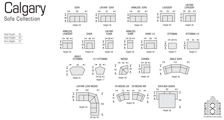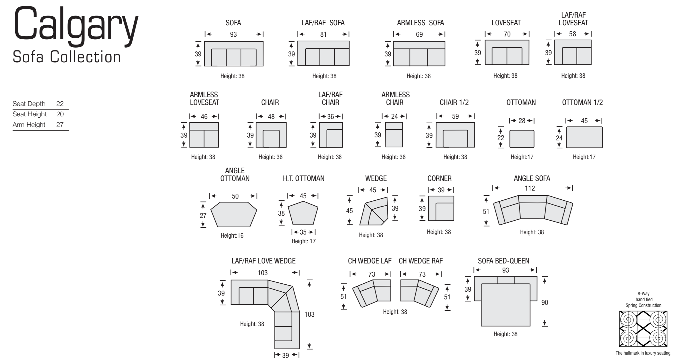 Sku Sheet: Some collections are also available to order as Sofa, Apartment Sofa, Chair, Loveseat, Ottoman, Chaise, and several Sectional configurations - please contact us for custom options and sizes.