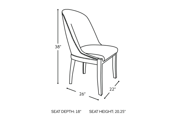 Here’s your chance to truly make it your own. This accent or dining chair gives you free reign in customizing the covering and finishes to your personal vision. The metal nail head trim is standard, adding another design element to work with. As with any Vogel chair, you can choose from hundreds of covering patterns and styles as well as the wood finish for the legs. Imagine the impression you’ll make!