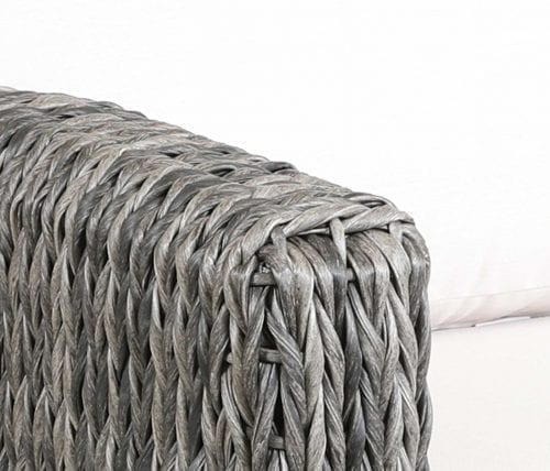 Inspired by the appeal of a myriad of colours in a cresting wave, new Tide twist SOL Weave™ brings a distinctive, natural charm to the new CABANACOAST® Celestine collection. The Celestine wicker patio furniture is carefully handcrafted in weather-resistant SOL Weave® Tide wicker on a powder-coated aluminum frame that are easy and simple to maintain. Absolute comfort is achieved through a slightly higher back profile and custom made cushions. The Celestine wicker patio furniture group picture shows Canadian-made outdoor cushions with Sunbrella® 48114 Cast Pumice outdoor cushions and Sunbrella® 14501-0001 Mara Classic outdoor pillows.