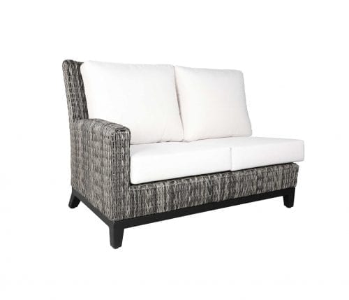 Inspired by the appeal of a myriad of colours in a cresting wave, new Tide twist SOL Weave™ brings a distinctive, natural charm to the new CABANACOAST® Celestine collection. The Celestine wicker patio furniture is carefully handcrafted in weather-resistant SOL Weave® Tide wicker on a powder-coated aluminum frame that are easy and simple to maintain. Absolute comfort is achieved through a slightly higher back profile and custom made cushions. The Celestine wicker patio furniture group picture shows Canadian-made outdoor cushions with Sunbrella® 48114 Cast Pumice outdoor cushions and Sunbrella® 14501-0001 Mara Classic outdoor pillows.