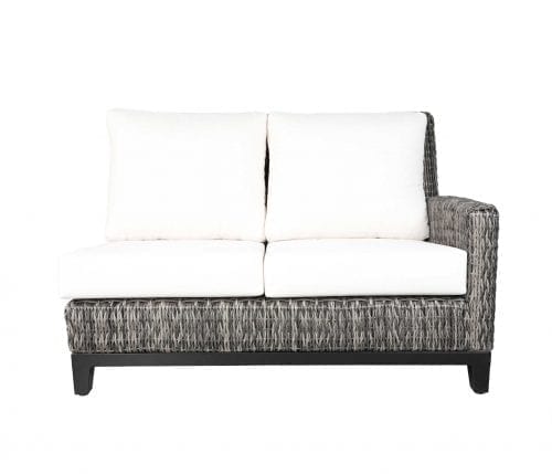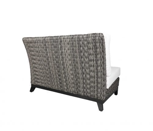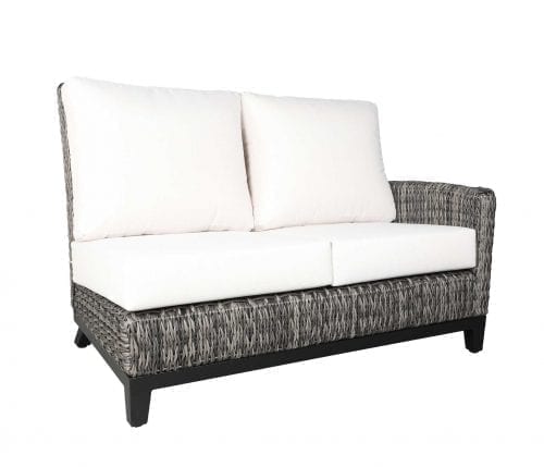 Inspired by the appeal of a myriad of colours in a cresting wave, new Tide twist SOL Weave™ brings a distinctive, natural charm to the new CABANACOAST® Celestine collection. The Celestine wicker patio furniture is carefully handcrafted in weather-resistant SOL Weave® Tide wicker on a powder-coated aluminum frame that are easy and simple to maintain. Absolute comfort is achieved through a slightly higher back profile and custom made cushions. The Celestine wicker patio furniture group picture shows Canadian-made outdoor cushions with Sunbrella® 48114 Cast Pumice outdoor cushions and Sunbrella® 14501-0001 Mara Classic outdoor pillows.