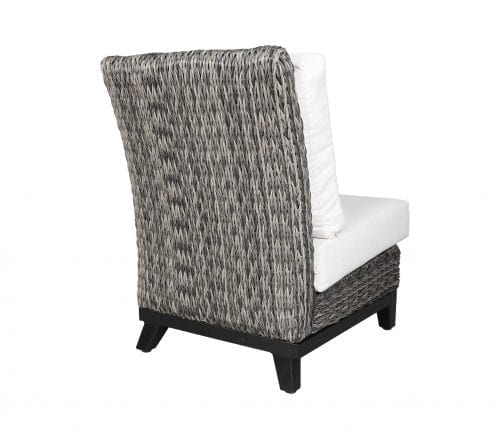 Inspired by the appeal of a myriad of colours in a cresting wave, new Tide twist SOL Weave™ brings a distinctive, natural charm to the new CABANACOAST® Celestine collection. The Celestine wicker patio furniture is carefully handcrafted in weather-resistant SOL Weave® Tide wicker on a powder-coated aluminum frame that are easy and simple to maintain. Absolute comfort is achieved through a slightly higher back profile and custom made cushions. The Celestine wicker patio furniture group picture shows Canadian-made outdoor cushions with Sunbrella® 48114 Cast Pumice outdoor cushions and Sunbrella® 14501-0001 Mara Classic outdoor pillows.