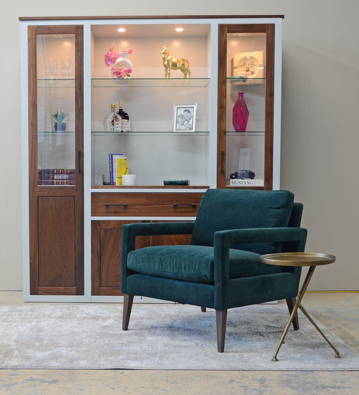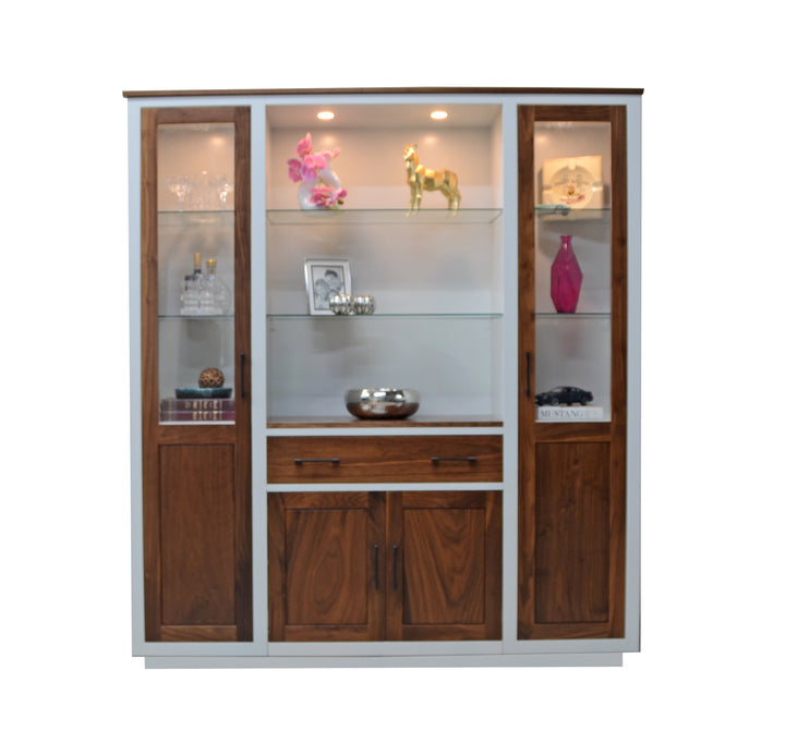 Features: Dimmable LED Lighting, Adjustable Glass shelves and display, Dovetailed Drawers.