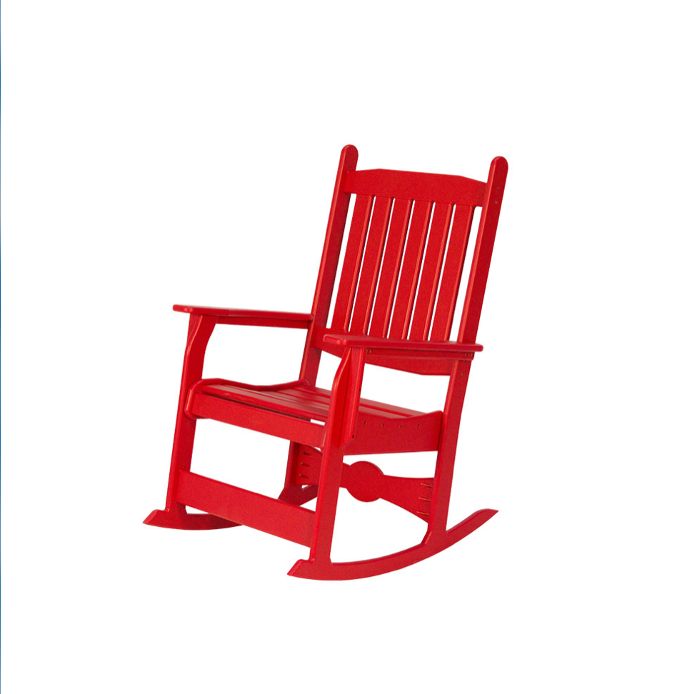 Ideal rocker for front porch etc. Features rugged construction with 3/4" solid plastic. 34" D x 30" W x 45" H - 49 pounds.