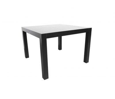 The Millcroft modern aluminum patio furniture dining table collection features durable aluminum and North American brand powder-coat paint. It is modern, clean, and has a unique hand applied finish to give it the appearance of a high end luxury look that is also maintenance free. The collection includes patio conversation sets, outdoor sectionals, and dining sets. No umbrella hole.