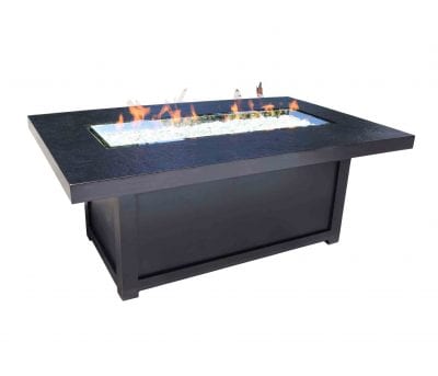 The Venice outdoor fire pit collection features durable cast aluminum, North American brand powder-coat paint and stainless steel burner. Dual fuel enabled (set up for liquid propane but can be converted to natural gas) and multiple fire glass options. The top is solid cast with a stone like texture. It has a modern luxury look and would be a welcome addition to any patio, creating warmth and ambiance. Tested in Canada and the US as an outdoor gas appliance.