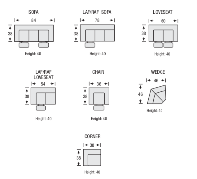 Sku Sheet: Some collections are also available to order as Sofa, Apartment Sofa, Chair, Loveseat, Ottoman, Chaise, and several Sectional configurations - please contact us for custom options and sizes.