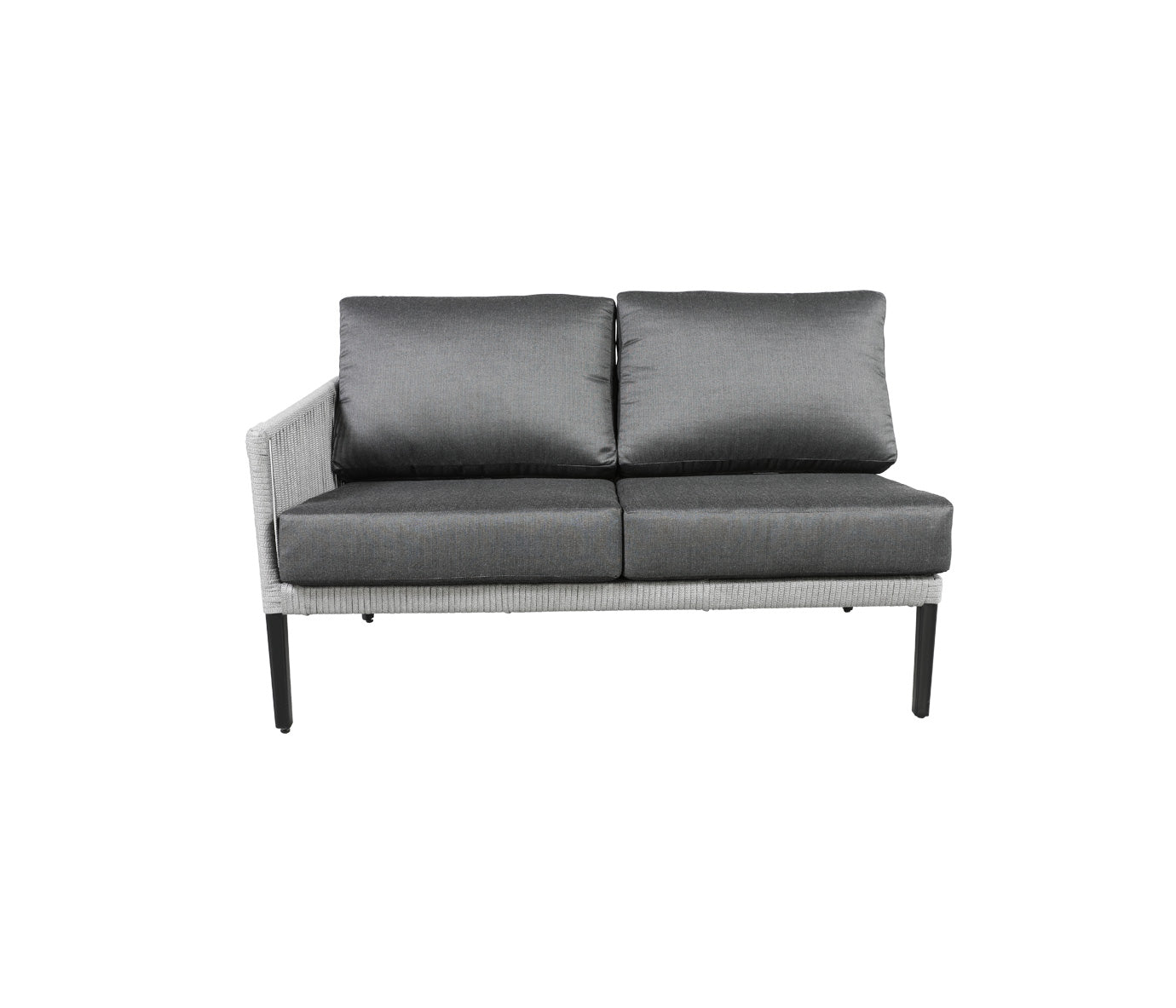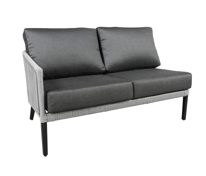 The Gambrel collection is defined by slanted arms and curved corners, giving this collection a nod to the structured arch of a gambrel roof. A unique interplay of Smoke SOL Rope™ woven onto an aluminum frame in Sherwin-Williams® Black lends Gambrel a chiaroscuro aspect, bound to draw eyes in any space. Bring the sophistication of indoor design to outdoor furniture with deep seating, sectional, and dining frame choices. Group photo cushions shown in 1045-79 Italian Sand, 18″ x 18″ pillows shown in 1043-929 Home Sand, and 21″ x 13″ pillows shown in 1048-97 Sand Rigato.