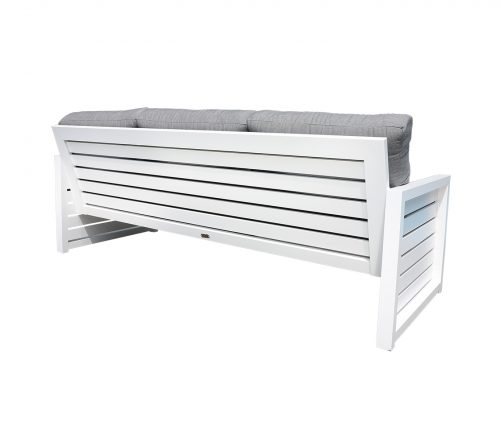 The Gramercy patio furniture collection features TigerDrylac® White cast aluminum. The cast aluminum frames are easy to maintain. The luxurious design is suitable for residential and commercial settings. The Gramercy patio furniture group photo is shown in Sunbrella® 40434 Cast Slate cushions, pillows in 21″*13″ Tempotest® 51353-8 Mason Cherry and 18″ 986-98 Home Cherry.