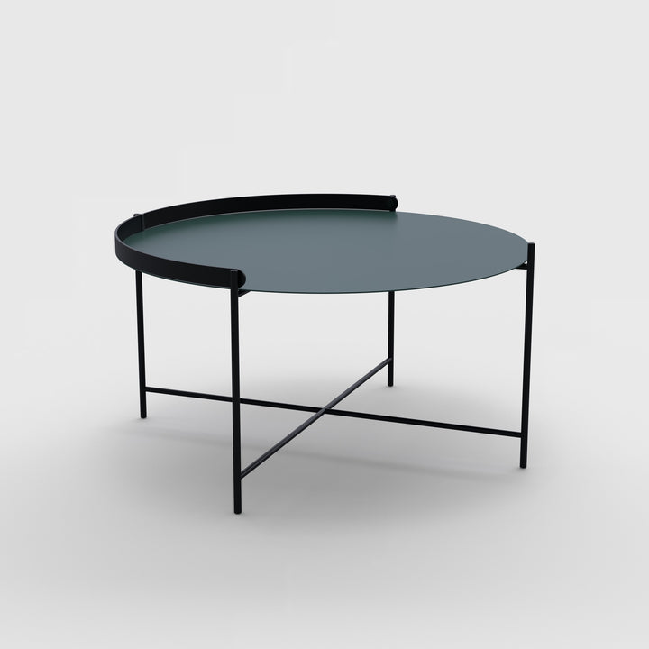 EDGE tray table is suitable for both indoor and outdoor use. The half ring shaped handle makes it easy to move the table between the living room and the garden, and when laid down it functions as a table edge making sure everything stays in place.