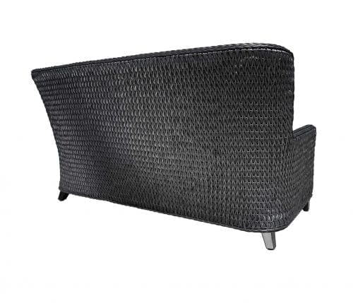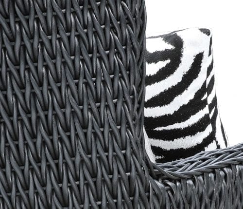 The Hudson wicker patio furniture is carefully handcrafted in weather-resistant SolWeave® twist wicker on a powdercoated aluminum frame. The SolWeave® wicker and aluminum frames are simple to maintain. The structure of the Hudson wicker patio furniture collection features an elevated backrest and solid, clean look. The stylish and sophisticated design is suitable for residential and commercial settings. The Hudson wicker patio furniture group picture shows Canadian-made outdoor cushions with Sunbrella® 40012-0079 Fife Silver outdoor cushions and Sunbrella® 145337-0001 Zebra Smoke outdoor pillows.