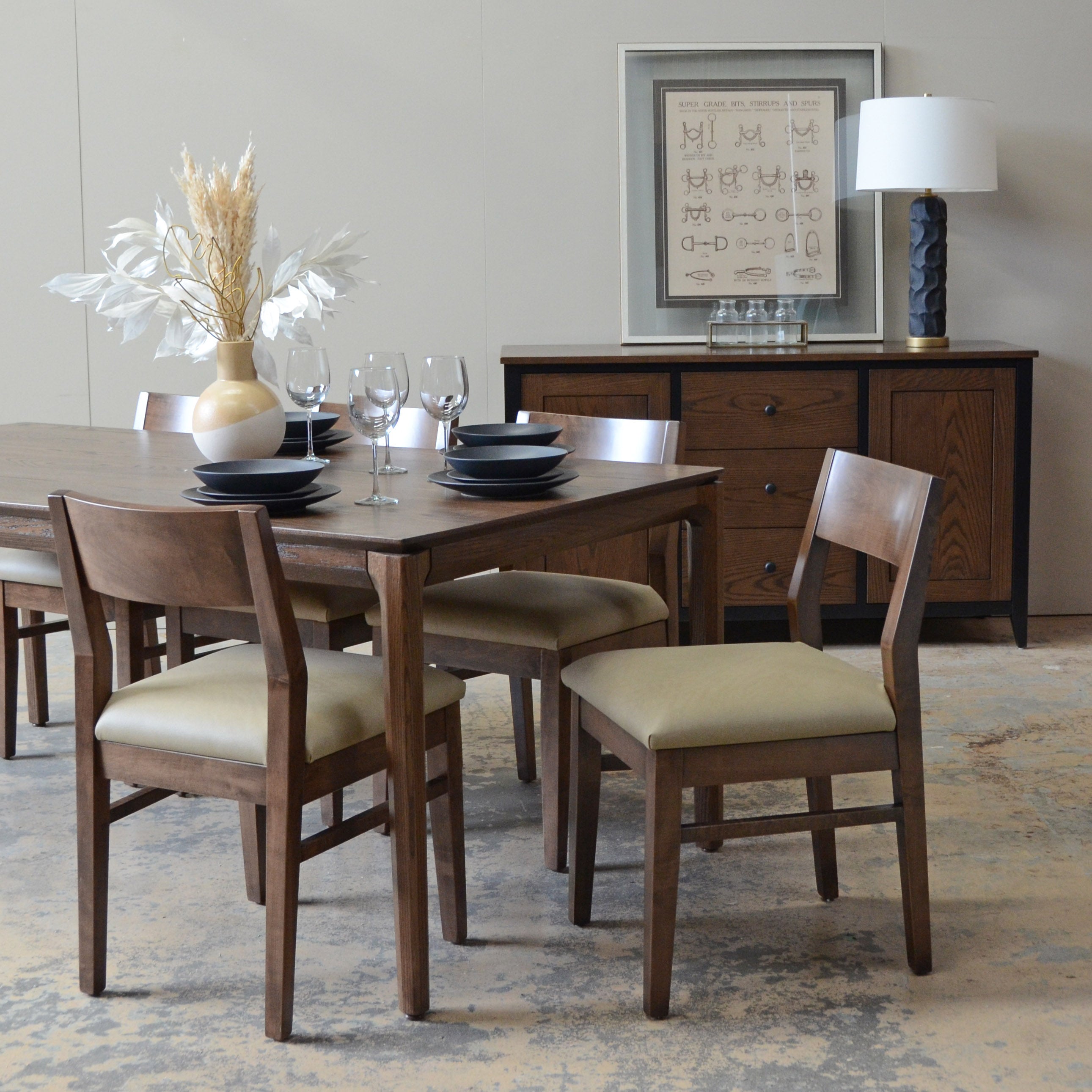 Our handcrafted Dining tables can be customized by changing the dimensions (width, depth, height), finish (paint or stain), wood type (maple, oak, walnut), or configuration (solid top, leaves, extensions). Let us design the build your dream table!