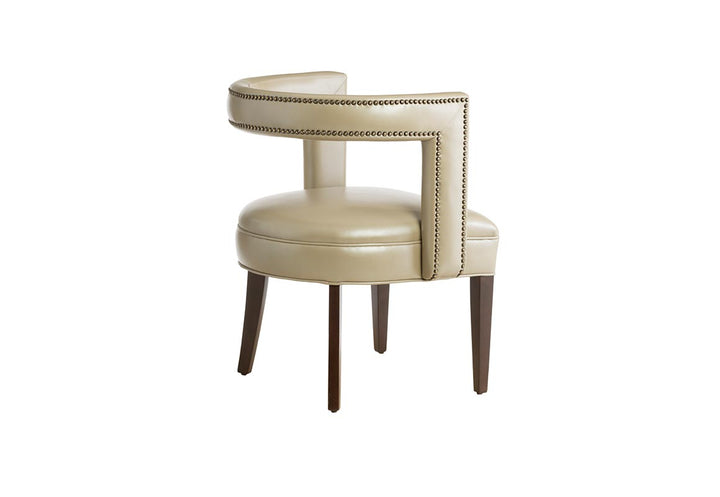 Bound to incite a conversation, this ingenious accent chair looks like a work of art; with its inspired design and quality craftsmanship, it truly is! More than just to be admired, once you try it out you’ll be hard-pressed to extract yourself from the surrounding comfort of this chair. As always, you can customize your chair(s) with a selection of wood finishes and coverings. Finally, picture your work of art enhanced with metal nail trim around the back and sides.