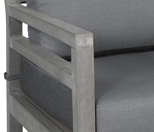 Bring friends and family alike together with the “European rustic” design vibe of the Landing collection. Featuring the nature-inspired texture of SOL Teak™ and, earthy colors of Umber or Mica, Landing brings organic warmth to any outdoor space. Decisive, clean lines and an oblique back rest and back leg impart a modern, handmade feel to this collection. Find Landing in deep seating and sectional options. Group photos show cushions in 97-615 Ciao Charcoal and pillows shown in 24-615 Ciao Onyx.