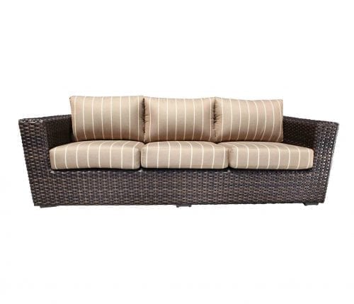Luxurious Outdoor Wicker Patio Furniture, Wide and Thick Style Wicker for durability, and Aluminum Frame. Features Canadian Made Sunbrella Outdoor Cushions. Custom order yours today!