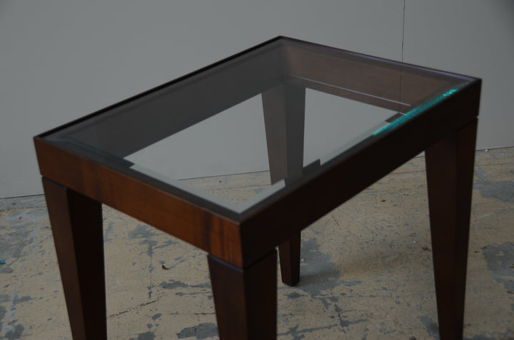 Modern, Timeless, clean lines and an open bevelled glass top allow this side table to evoke a delicate presence.