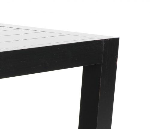 The Millcroft modern aluminum patio furniture dining table collection features durable aluminum and North American brand powder-coat paint. It is modern, clean, and has a unique hand applied finish to give it the appearance of a high end luxury look that is also maintenance free. The collection includes patio conversation sets, outdoor sectionals, and dining sets. No umbrella hole.
