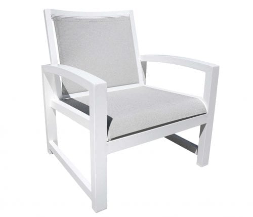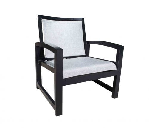 The contemporary, crisp lines of the Millcroft collection are constructed of durable cast aluminum frames which are powder coated for optimal corrosion resistance with Sunbrella Sling® fabric. Suitable for residential, commercial and poolside settings, this collection reflects our customers’ wish for luxury, function and ease. The Millcroft deep seating collection is shown in Sunbrella Sling® Augustine Pewter on Sherwin-Williams® Dark Rum cast aluminum frames. The Millcroft collection is also available in Sunbrella Sling® Sailing Seagull on TigerDrylac® White frames.