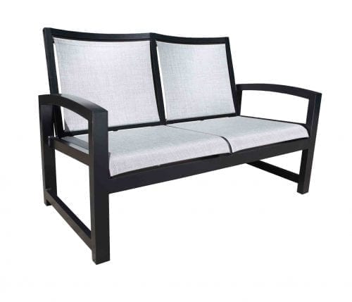 The contemporary, crisp lines of the Millcroft collection are constructed of durable cast aluminum frames which are powder coated for optimal corrosion resistance with Sunbrella Sling® fabric. Suitable for residential, commercial and poolside settings, this collection reflects our customers’ wish for luxury, function and ease. The Millcroft deep seating collection is shown in Sunbrella Sling® Augustine Pewter on Sherwin-Williams® Dark Rum cast aluminum frames. The Millcroft collection is also available in Sunbrella Sling® Sailing Seagull on TigerDrylac® White frames.