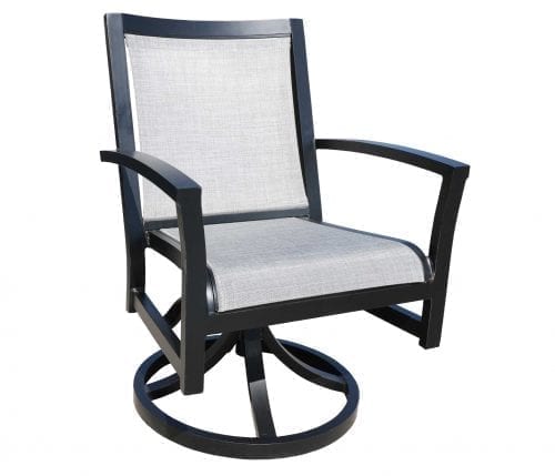 The contemporary, crisp lines of the Millcroft collection are constructed of durable cast aluminum frames which are powder coated for optimal corrosion resistance with Sunbrella Sling® fabric. Suitable for residential, commercial and poolside settings, this collection reflects our customers’ wish for luxury, function and ease. The Millcroft deep seating collection is shown in Sunbrella Sling® Augustine Pewter on Sherwin-Williams® Dark Rum cast aluminum frames. The Millcroft collection is also available in Sunbrella Sling® Sailing Seagull on TigerDrylac® White frames.