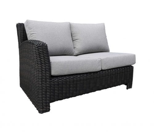 The Monterrey wicker patio furniture is handcrafted in premium SolWeave® round-style wicker on a powder-coated aluminum frame. The SolWeave® wicker is easy to maintain. The luxurious patio furniture design is suitable for residential, commercial, restaurant patio bars and hotel resorts. The Monterrey wicker patio furniture group photo is shown in Sunbrella® 16001-0010 Blend Fog cushions and Sunbrella® F018 140 Mac Mojito pillows.