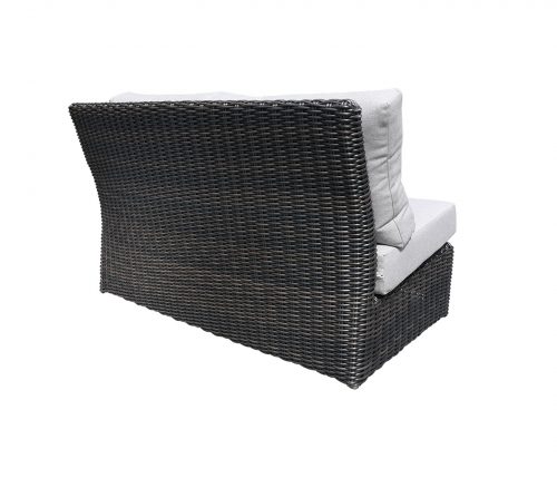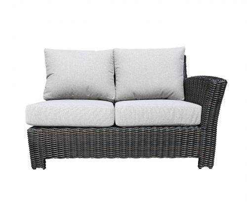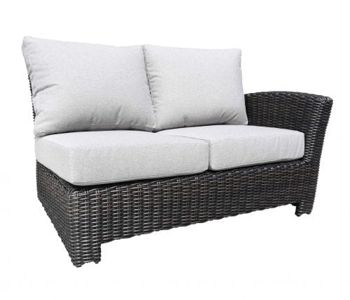 The Monterrey wicker patio furniture is handcrafted in premium SolWeave® round-style wicker on a powder-coated aluminum frame. The SolWeave® wicker is easy to maintain. The luxurious patio furniture design is suitable for residential, commercial, restaurant patio bars and hotel resorts. The Monterrey wicker patio furniture group photo is shown in Sunbrella® 16001-0010 Blend Fog cushions and Sunbrella® F018 140 Mac Mojito pillows.