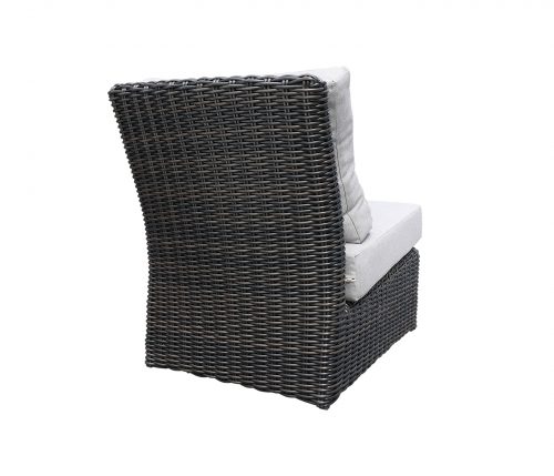 The Monterrey wicker patio furniture is handcrafted in premium SolWeave® round-style wicker on a powder-coated aluminum frame. The SolWeave® wicker is easy to maintain. The luxurious patio furniture design is suitable for residential, commercial, restaurant patio bars and hotel resorts. The Monterrey wicker patio furniture group photo is shown in Sunbrella® 16001-0010 Blend Fog cushions and Sunbrella® F018 140 Mac Mojito pillows.