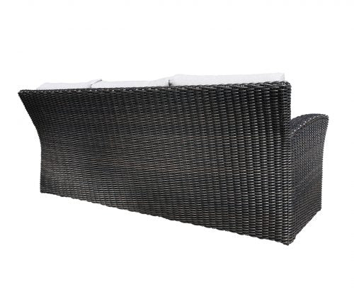 The Monterrey wicker patio furniture is handcrafted in premium SolWeave® round-style wicker on a powder-coated aluminum frame. The SolWeave® wicker is easy to maintain. The luxurious patio furniture design is suitable for residential, commercial, restaurant patio bars and hotel resorts. The Monterrey wicker patio furniture group photo is shown in Sunbrella® 16001-0010 Blend Fog cushions and Sunbrella® F018 140 Mac Mojito pillows.