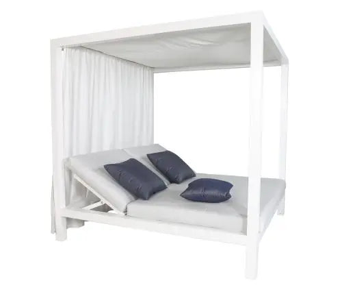 The New for 2023 Muse Outdoor Cabana Daybed features a durable aluminum frame in 2 frame finish selections and many options for a bespoke, lounge-worthy outdoor refuge. Can be mounted to floor. Your muse: the pursuit of rest and relaxation.