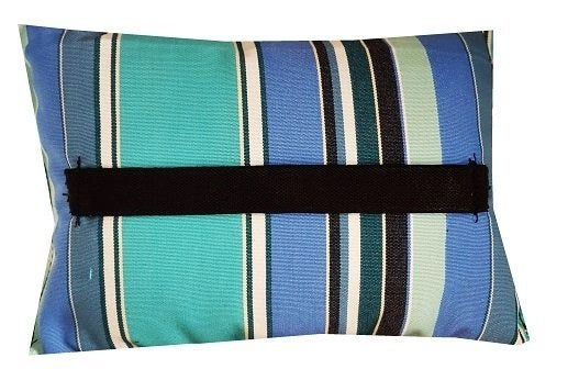 We manufacture headrest cushions from premium Sunbrella fabric, know for its lasting durability for outdoor furniture. The inside of the cushions is filled with soft plastic grindings that are collected during the manufacturing process. This is a very comfortable rest, and it help prevent plastic going to the landfills. These cushions will fit our Modern Adirondack, Pondside, Upright Muskoka Chair, and Lounges. The back of the cushion has an elastic band that stretches across the back slats of the chair to secure it. Size - 12"L x 8" H.