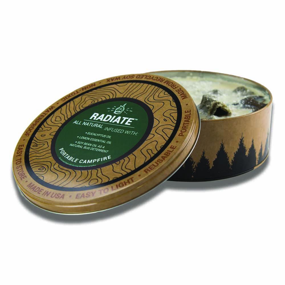 With all-natural ingredients like eucalyptus, lemon, and soybean oil, this Radiate campfire doubles as both a fire and a scented experience. Everything about the Eucalyptus scent is like the Radiate Campfire Classic - up to5 hours of burn time, and portability.