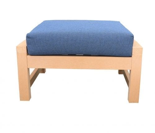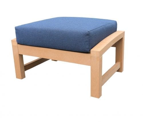 The transitional design of the Savannah collection and its teak wood appearance makes this patio furniture look and feel amazingly natural. The frames are crafted in premium SolTeak™ which is as smooth and as strong as real teak, with the colour and grain throughout, and is virtually maintenance free. Classic yet modern, Savannah is available in a warm, Natural finish or Weathered grey finish, and is suitable for residential, commercial and coastal properties. The group image shows Canadian-made outdoor cushions in Sunbrella® 16001-0001 Blend Indigo and pillows shown in Sunbrella® 145339-0002 Gable Indigo on SolTeak™ Natural finish.