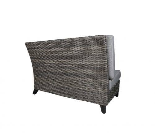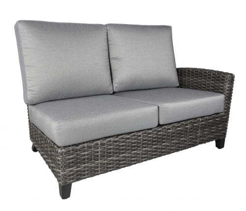 Named after the small, charming resort town in Arizona, CABANACOAST®’s Sedona collection will bring a feeling of warmth and respite to any outdoor space. Sedona is graced with a high back, arched arm, and the organic hues of new Reef SOL Weave® Wicker, which will inspire time for reading a favorite book or a comfortable chat with a friend. The Sedona wicker patio furniture design is suitable for residential, commercial and patio wine bars. Create a personal retreat using a range of deep seating, sectional, and lounge pieces. The Sedona wicker outdoor sectional furniture group photo shows Canadian-made outdoor cushions with Sunbrella® 1046-93 Charcoal Sand cushions, pillows in 18″ and 21″x13″ Sunbrella® 51684-4 Carrara Maritime and 18″ Sunbrella® 5453 Canvas.