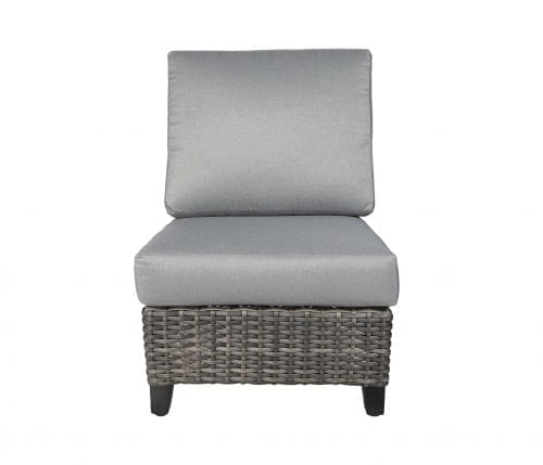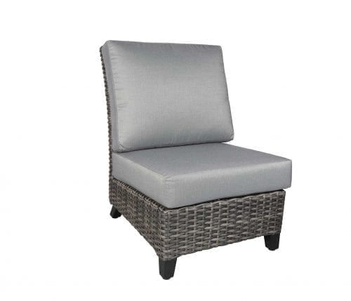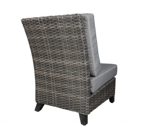 Named after the small, charming resort town in Arizona, CABANACOAST®’s Sedona collection will bring a feeling of warmth and respite to any outdoor space. Sedona is graced with a high back, arched arm, and the organic hues of new Reef SOL Weave® Wicker, which will inspire time for reading a favorite book or a comfortable chat with a friend. The Sedona wicker patio furniture design is suitable for residential, commercial and patio wine bars. Create a personal retreat using a range of deep seating, sectional, and lounge pieces. The Sedona wicker outdoor sectional furniture group photo shows Canadian-made outdoor cushions with Sunbrella® 1046-93 Charcoal Sand cushions, pillows in 18″ and 21″x13″ Sunbrella® 51684-4 Carrara Maritime and 18″ Sunbrella® 5453 Canvas.
