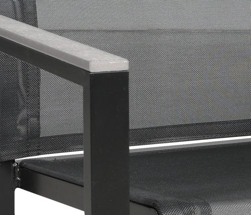 Relaxing in style is effortless with the Skye collection. The timeless, minimalistic profile and arched back add a subtle flair and superb comfort to this collection. Create a chic outdoor setting with two colorways: Black BatylineⓇ sling on a Black aluminum frame with Mica SOL Teak™ accents or White BatylineⓇ sling on a White aluminum frame with Umber SOL Teak™ accents. The Skye collection includes dining, deep seating, and, low-profile Spa and Sand seating options. Stackable. With Wheels.