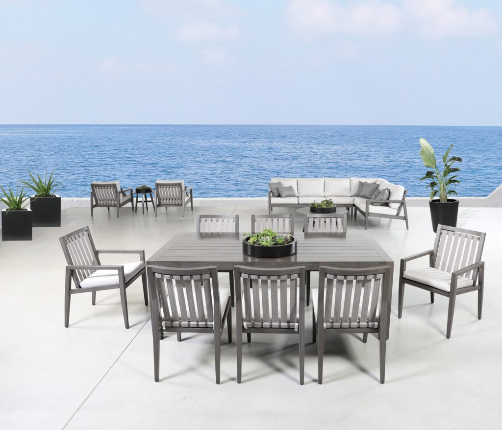 Drawing inspiration from a space where an artisan creates their work, the new CABANACOAST® Studio collection’s bold outline is a stroke of brilliance. Employing a creative blend of hand-brushed aluminum in Sherwin-Williams® Patina finish and new SOL Rope™ Granite, Studio captures the essence of inspired outdoor design. Crafted with distinct, angular back legs and a pitched back for superb comfort, Studio is available in dining, deep seating, and sectional frame options.