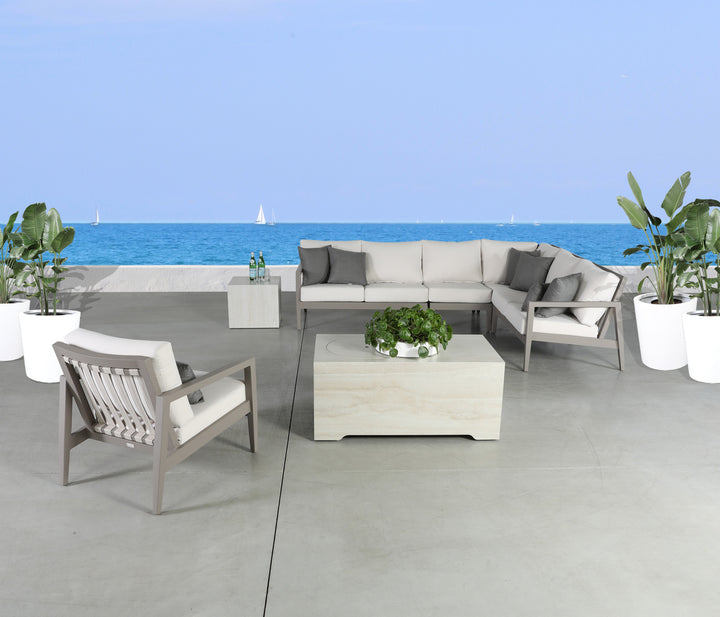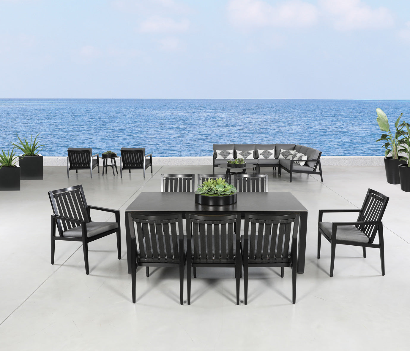 Drawing inspiration from a space where an artisan creates their work, the Studio collection’ s bold outline is a stroke of brilliance. Crafted with distinct, angular back legs & a pitched back for superb comfort + our exclusive wide, flat format rope accent on all seat backs, Studio captures the essence of inspired outdoor design. Available in 2 SOL Rope™ + frame finish combinations in dining, deep seating, & sectional frame options. Shade SOL Rope™ constructed from Sunbrella® 32000-0036 Sailcloth Shade, Sand SOL Rope™ constructed from Sunbrella® 16001-0014 Blend Linen.