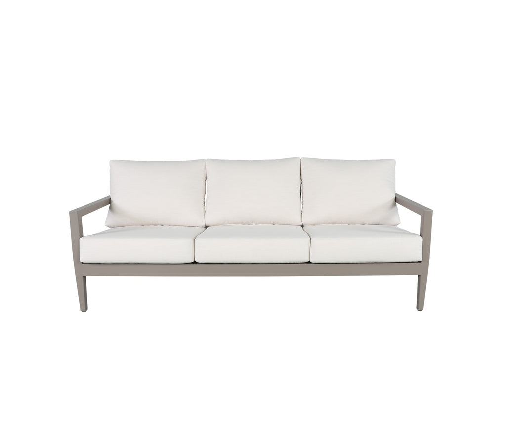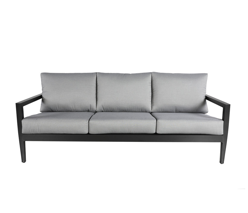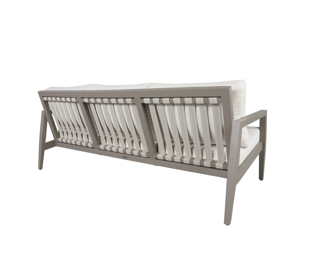 Drawing inspiration from a space where an artisan creates their work, the Studio collection' s bold outline is a stroke of brilliance. Crafted with distinct, angular back legs & a pitched back for superb comfort + our exclusive wide, flat format rope accent on all seat backs, Studio captures the essence of inspired outdoor design. Available in 2 SOL Rope™ + frame finish combinations in dining, deep seating, & sectional frame options. Shade SOL Rope™ constructed from Sunbrella® 32000-0036 Sailcloth Shade, Sand SOL Rope™ constructed from Sunbrella® 16001-0014 Blend Linen. Fabric shown: 1043-929 Home Sand, group shot in 1043-929 Home Sand, Pillows in 132120-SMNO Smolder Noir.