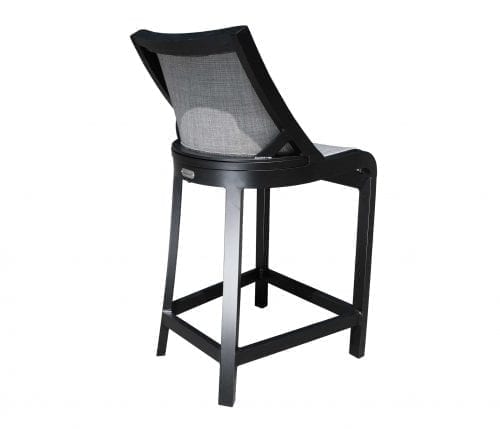 The fresh styling of the Swing collection features durable cast aluminum frames which are powder coated for optimal corrosion resistance and Sunbrella Sling® fabric. Suitable for both residential and commercial settings and available in a light or dark colourway, the sling fabric is also replaceable. The Swing deep seating group image is shown in Sunbrella Sling® Augustine Pewter on Sherwin-Williams® Dark Rum frames. The Swing collection is also available in Sunbrella Sling® Sailing Seagull on TigerDrylac® White frames.