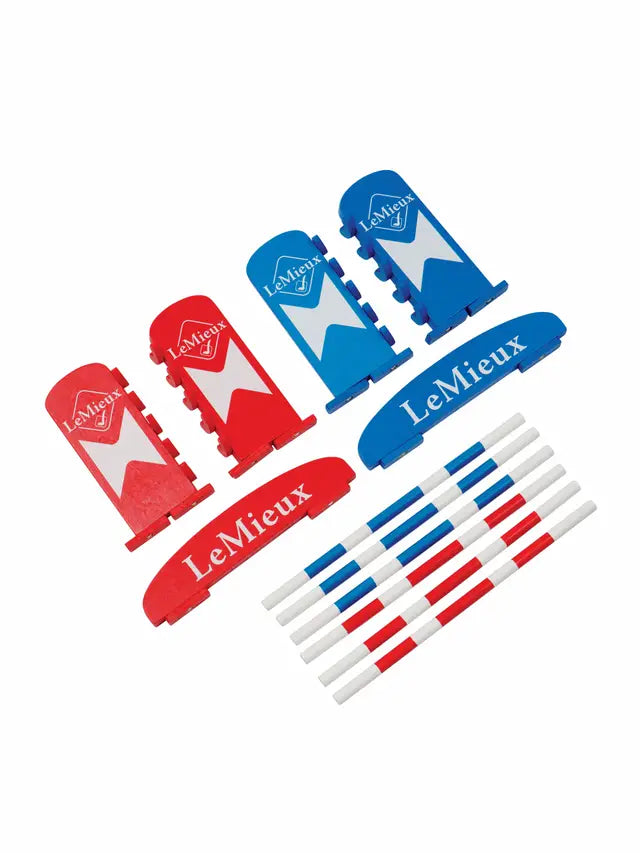Challenge your Toy Pony to a clear round with this realistic show jump set. These mini replicas are the perfect size for LeMieux Toy Ponies, allowing children to enact an authentic play scenario and play the jumping as a game. Poles will fall if knocked, meaning faults accumulated – just like in the real event! Made with wooden wings, free stranding fillers and individual wooden poles that can be adjusted to different heights and positions, these toy how jumps set the scene for competitive, constructive, imaginary role play.